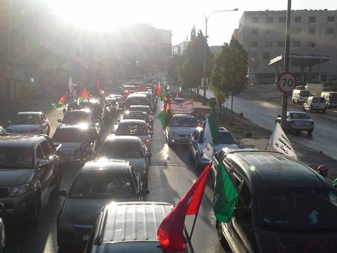 انطلقت بعد عصر أمس من مجمع النقابات مسيرة سيارات حاشدة دعت إليها تنسيقية اللجان العاملة للأسرى الأردنيين في سجون الاحتلال الإسرائيلية. وقد شارك في المسيرة ما يقارب 150 سيارة جابت مختلف مناطق العاصمة الأردنية عمان. وقد كان سير المسيرة من مجمع النقابات باتجاه دوار المدينة الرياضية، ومن ثمّ دوار الدّاخلية، إلى الدوار الرابع والخامس والسّادس مروراً بالدوار السابع والثامن، ومن ثم شارع المدينة الطبية باتجاه منطقة خلدا الى شارع الجاردنز وصولا إلى إشارات حدائق الملك عبدالله، ومن ثم العودة إلى مجمع النقابات المهنية في منطقة الشميساني. وردّد الأسير المحرّر مازن ملصة عبر مكبرات الصوت عبارات تضامنية مع الأسرى، تركزت حول إضراب الأسرى الأردنيين عن الطعام المستمر منذ 44 يوماً، وحول اهمال الحكومة الأردنية لقضيتهم، وطالبت بعض الشعارات بإسقاط اتفاقية وادي عربة. كما ورفعت لافتات تندد بموقف الحكومة السلبي تجاه الأسرى، و في نهاية الفعالية دعت تنسيقية اللجان العاملة للاسرى جموع المشاركين للتواجد يوم السبت أمام الديوان الملكي للمشاركة بالاعتصام اليومي مع أهالي الأسرى.