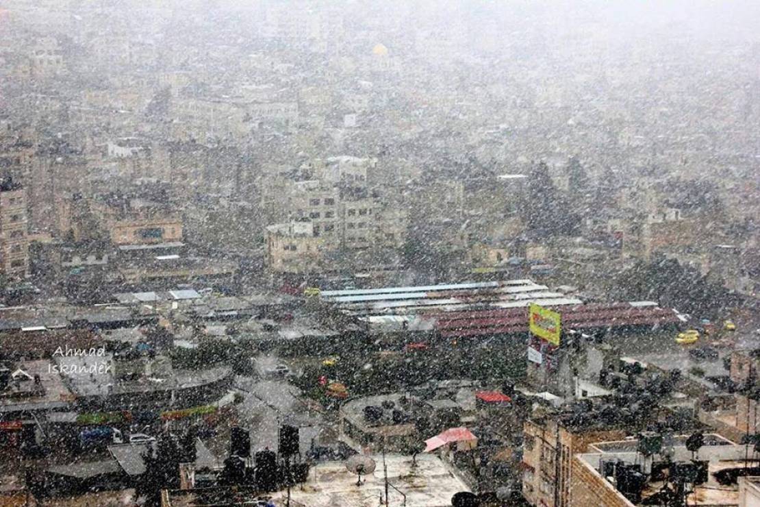 هذا ويتوقع مع ساعات الليل المتأخرة وفجر الخميس تساقط زخات من الثلوج فوق قمم جبال الجليل ورام الله والخليل العالية التي تزيد عن 900-1000 متر عن سطح البحر.