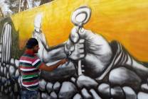 فنان فلسطيني يرسم "النكبة" على جدران المخيم